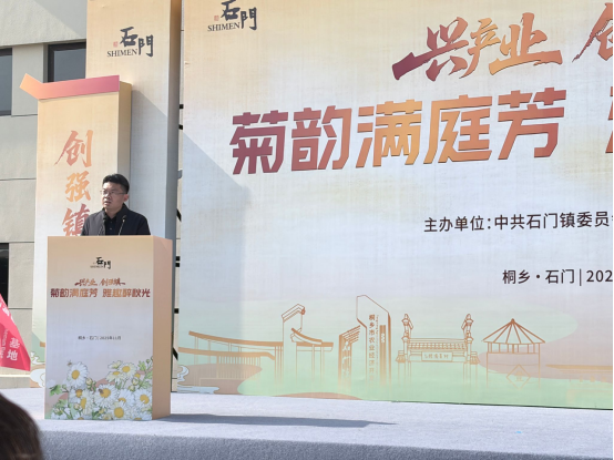 11月15日,杭白菊品牌推广活动在桐乡石门镇举行。动科动医学院王翀教授与茅慧玲副教授出席活动。