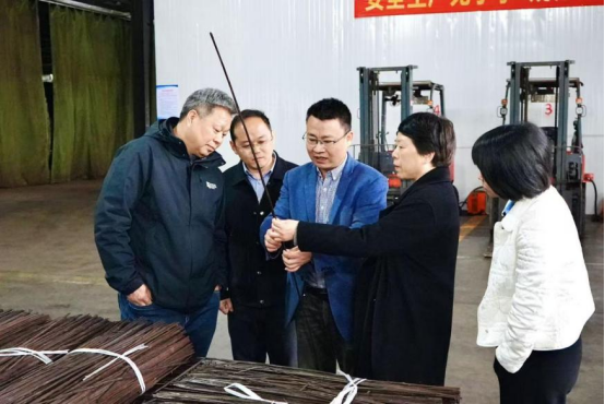 在佳禾竹业科技,负责人陪同参观重组竹地板生产线。得知我校技术团队帮助企业攻克板材耐久性难题后,施美红建议强化产业链协同,全链条把控质量,以系统思维践行绿色环保理念。她表示,高校将在技术研发、标准制定等方面精准支持,助力企业走稳“以竹代塑”发展之路。