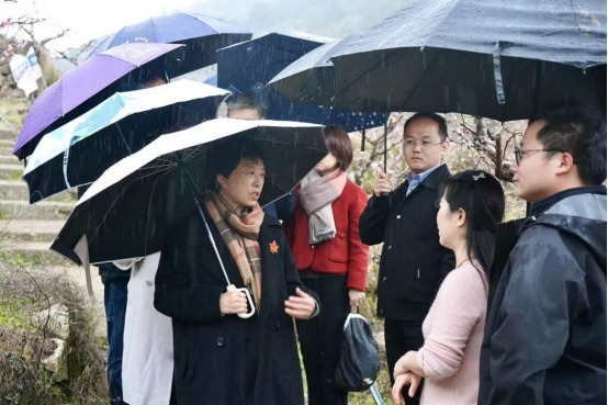 3月18日,专家团冒雨来到衢江区双桥乡田蓬村,深入省科技特派员蹲点的千亩桃园家庭农场,与农户面对面交流。该农场在白岩教授团队指导下,目前桃林面积近500亩,拥有10多个桃品种,今年总产量有望突破40万斤。施美红仔细询问桃子产量效益、经营模式及当前困难。针对农户反映的冷链仓储短缺问题,她建议加快冷库建设,并围绕桃子套袋技术分析品质提升路径,鼓励农户通过标准化生产增强市场竞争力。专家团结合林下经济发展前景,从“果园养鹅”生态循环、桃干果脯开发、药食兼用小食品研发等方面给予专业指导,并引入乡村运营理念,提出“片区组团”发展思路,引进优新品种与科技,打造“好环境、好技术、好产品”,推动农产品进高校,实现“三好一进”。